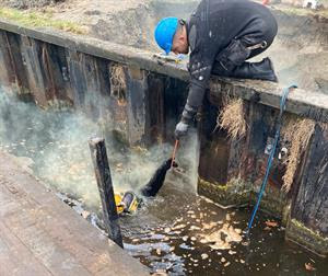 Duikers maakten met een innovatieve las- en snijmethode een opening in de damwand onder de waterspiegel van het Noordhollandsch Kanaal. Daarmee is het eerste deel van de verbinding gelegd tussen het kanaal en het ziekenhuis. Willy Frits, teamhoofd Algemene techniek van het BovenIJ: ‘In de komende maanden wordt een gesloten systeem aangelegd waar het kanaalwater doorheen stroomt. Het gesloten systeem wordt langs een warmtewisselaar geleid zodat we gebruik kunnen maken van de temperatuur die het kanaalwater afgeeft.’