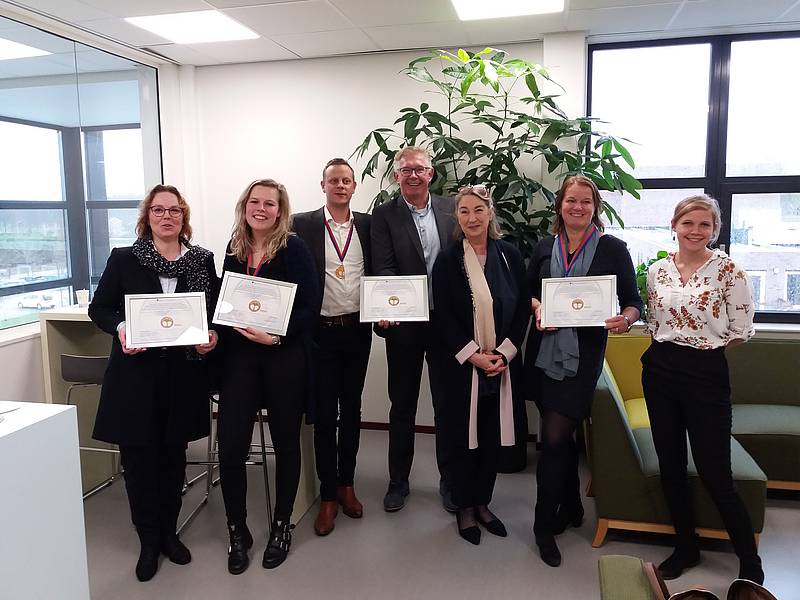 vlnr: Joan Lucas Joan Lucas (Facilitaire zaken SEIN), Heleen Saris (Facilitaire zaken SEIN), Jeroen Daamen (Vastgoed en milieu SEIN), Jean Willem Barzilay (Raad van Bestuur SEIN), Mariëtte Sedee (Wethouder Ruimtelijke ordening, Milieu en Agrarische zaken Gemeente Haarlemmermeer), Marjolijn Boomsma (Facilitair SEIN) en Judith de Bree (Milieu Platform Zorgsector)